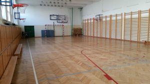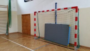 sala gimnastyczna z bramkami w Szkole Podstawowej Nr 127 przy ul. Kowieńskiej 12/20 w Warszawie